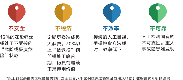 鋼絲繩在使用過程中不可避免的會產(chǎn)生系列各類損傷威脅它的安和壽命,那么對它的安監(jiān)控就不得不引起每位安管理者和參與者的重視,然而由于種種原因當(dāng)前鋼絲繩安管控問題不容樂觀,主要體現(xiàn)在下幾個方面: